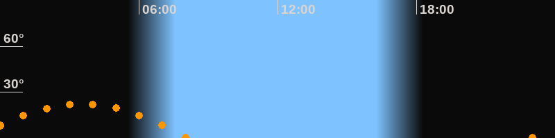| Untergang | 08:07 Uhr im Südwesten (αAz = 243,5°) |