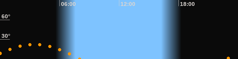 | Untergang | 08:03 Uhr im Südwesten (αAz = 243,5°) |