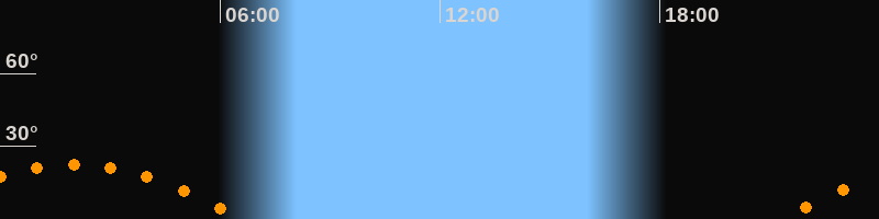 | Untergang | 06:37 Uhr im Südwesten (αAz = 243,5°) |