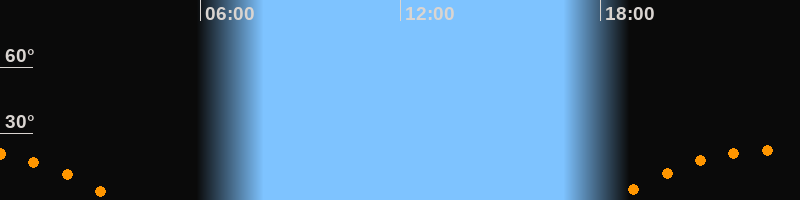 | Aufgang | 18:18 Uhr im Südosten (αAz = 116,5°) |