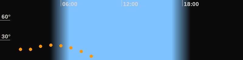 | Untergang | 09:48 Uhr im Südwesten (αAz = 243,5°) |
