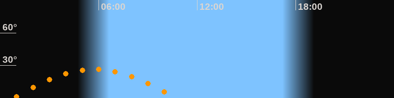 Höchster Stand (Kulmination)05:45 Uhr (h = 26,5°)