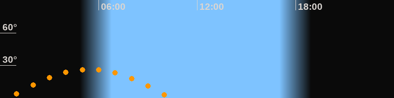Höchster Stand (Kulmination)05:25 Uhr (h = 26,5°)