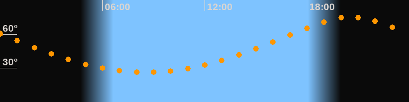 Höchster Stand (Kulmination)20:33 Uhr (h = 75,1°)