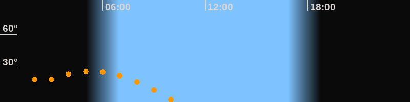 | Höchster Stand (Kulmination) | 05:18 Uhr (h = 27,1°) |