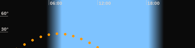 | Höchster Stand (Kulmination) | 07:10 Uhr (h = 27,1°) |