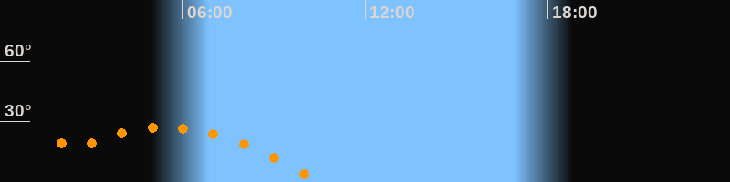 | Höchster Stand (Kulmination) | 05:27 Uhr (h = 27,1°) |
