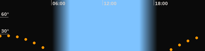 | Aufgang | 19:39 Uhr im Osten (αAz = 108,7°) |