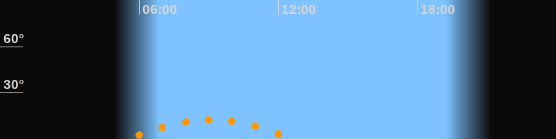 | Untergang | 12:37 Uhr im Südwesten (αAz = 225,8°) |