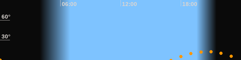 | Aufgang | 17:00 Uhr im Südosten (αAz = 134,2°) |