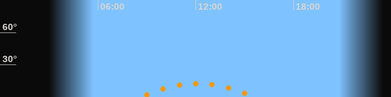 | Untergang | 15:38 Uhr im Südwesten (αAz = 225,8°) |