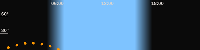 | Untergang | 07:19 Uhr im Südwesten (αAz = 225,8°) |