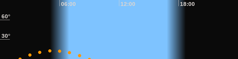 | Untergang | 08:59 Uhr im Südwesten (αAz = 225,8°) |