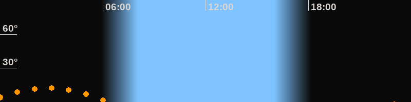 | Untergang | 06:20 Uhr im Südwesten (αAz = 225,8°) |