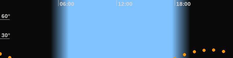 | Aufgang | 18:03 Uhr im Südosten (αAz = 134,2°) |