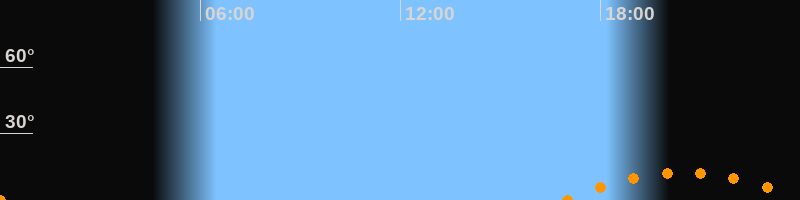 | Untergang | 00:02 Uhr im Südwesten (αAz = 225,8°) |