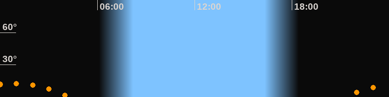 | Untergang | 04:23 Uhr im Südwesten (αAz = 225,8°) |
