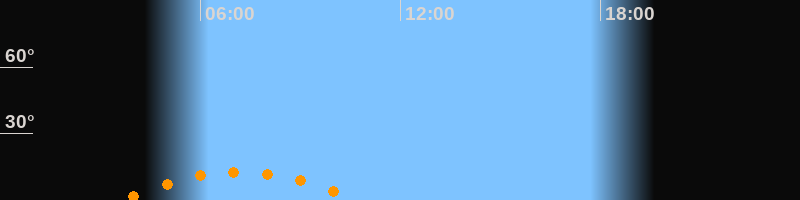 | Höchster Stand (Kulmination) | 07:10 Uhr (h = 12,6°) |