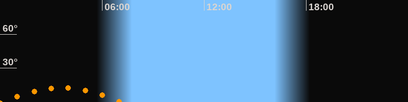 | Aufgang | 00:01 Uhr im Südosten (αAz = 134,2°) |