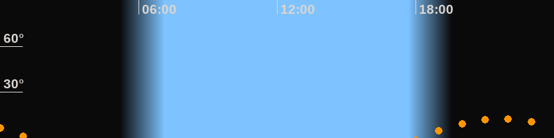 | Untergang | 01:16 Uhr im Südwesten (αAz = 225,8°) |
