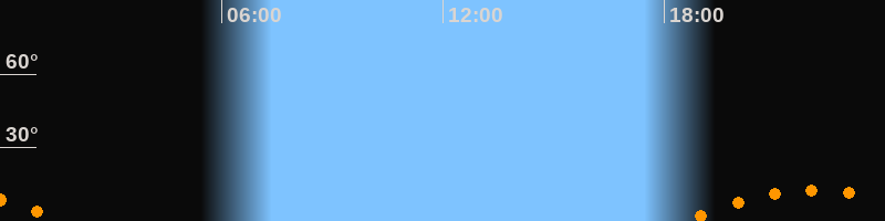 | Aufgang | 18:35 Uhr im Südosten (αAz = 134,2°) |
