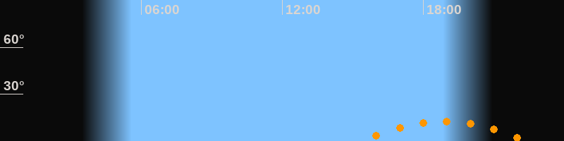 | Untergang | 22:24 Uhr im Südwesten (αAz = 225,8°) |