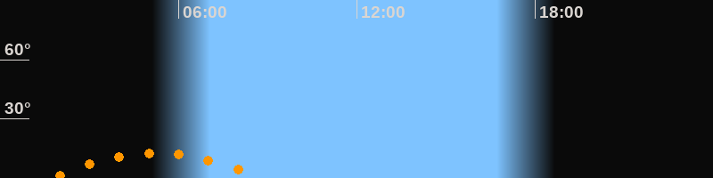 | Untergang | 08:47 Uhr im Südwesten (αAz = 225,8°) |