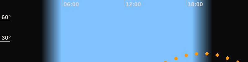 | Aufgang | 15:59 Uhr im Südosten (αAz = 134,2°) |