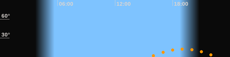 | Untergang | 22:38 Uhr im Südwesten (αAz = 225,8°) |