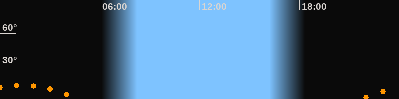 | Aufgang | 21:39 Uhr im Südosten (αAz = 134,2°) |