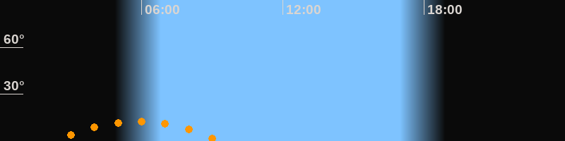 | Aufgang | 02:17 Uhr im Südosten (αAz = 134,2°) |