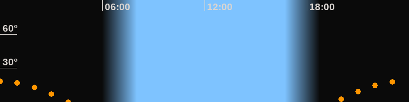 | Aufgang | 19:34 Uhr im Südosten (αAz = 123,1°) |