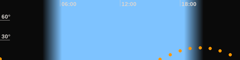 | Untergang | 00:13 Uhr im Südwesten (αAz = 236,9°) |