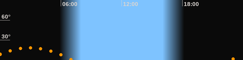 | Untergang | 07:11 Uhr im Südwesten (αAz = 236,9°) |