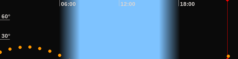 | Aufgang | 22:21 Uhr im Südosten (αAz = 123,1°) |