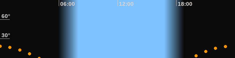 | Aufgang | 19:28 Uhr im Südosten (αAz = 123,1°) |