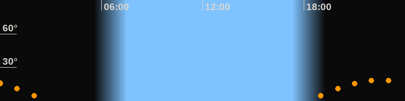 | Aufgang | 18:14 Uhr im Südosten (αAz = 123,1°) |