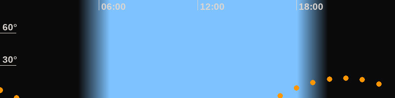 | Aufgang | 16:36 Uhr im Südosten (αAz = 123,1°) |