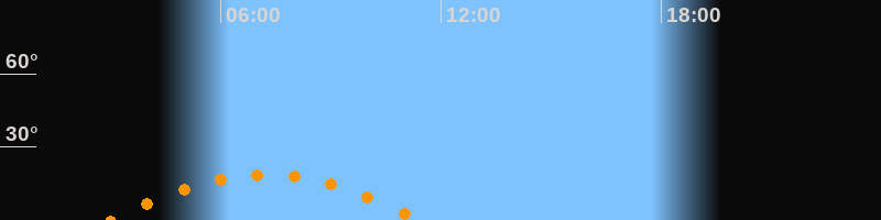 | Höchster Stand (Kulmination) | 07:12 Uhr (h = 18,6°) |