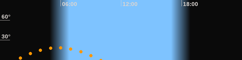 | Höchster Stand (Kulmination) | 05:46 Uhr (h = 18,6°) |