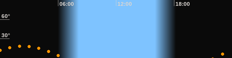 | Aufgang | 22:04 Uhr im Südosten (αAz = 123,1°) |