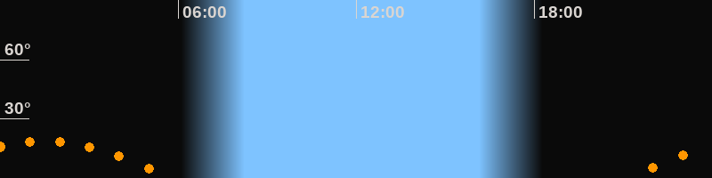 | Untergang | 05:44 Uhr im Südwesten (αAz = 236,9°) |