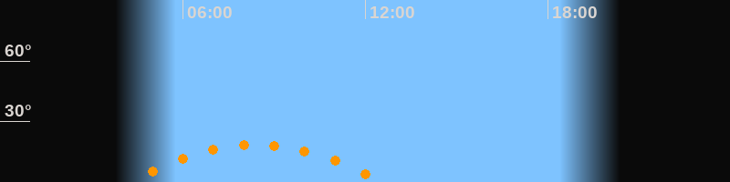 | Höchster Stand (Kulmination) | 08:24 Uhr (h = 18,6°) |