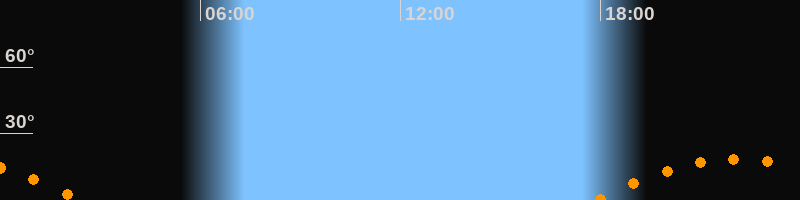 | Untergang | 02:24 Uhr im Südwesten (αAz = 236,9°) |