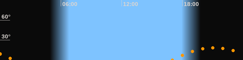 | Aufgang | 16:54 Uhr im Südosten (αAz = 123,1°) |