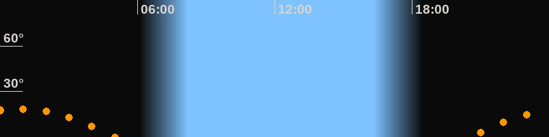| Untergang | 05:02 Uhr im Südwesten (αAz = 236,9°) |