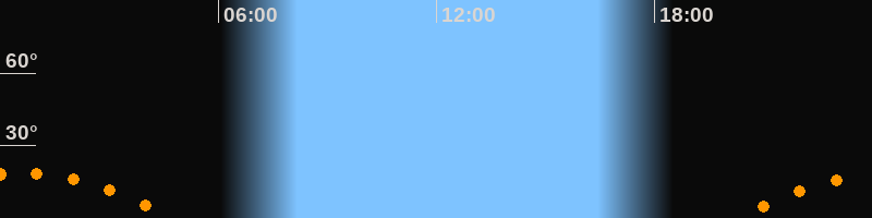 | Untergang | 04:47 Uhr im Südwesten (αAz = 236,9°) |