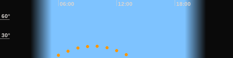 | Höchster Stand (Kulmination) | 09:34 Uhr (h = 18,6°) |
