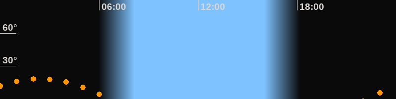 | Aufgang | 22:08 Uhr im Südosten (αAz = 123,1°) |