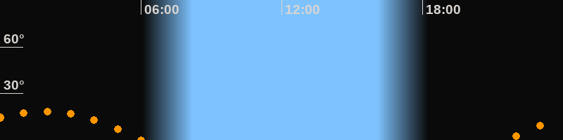| Untergang | 06:04 Uhr im Südwesten (αAz = 236,9°) |